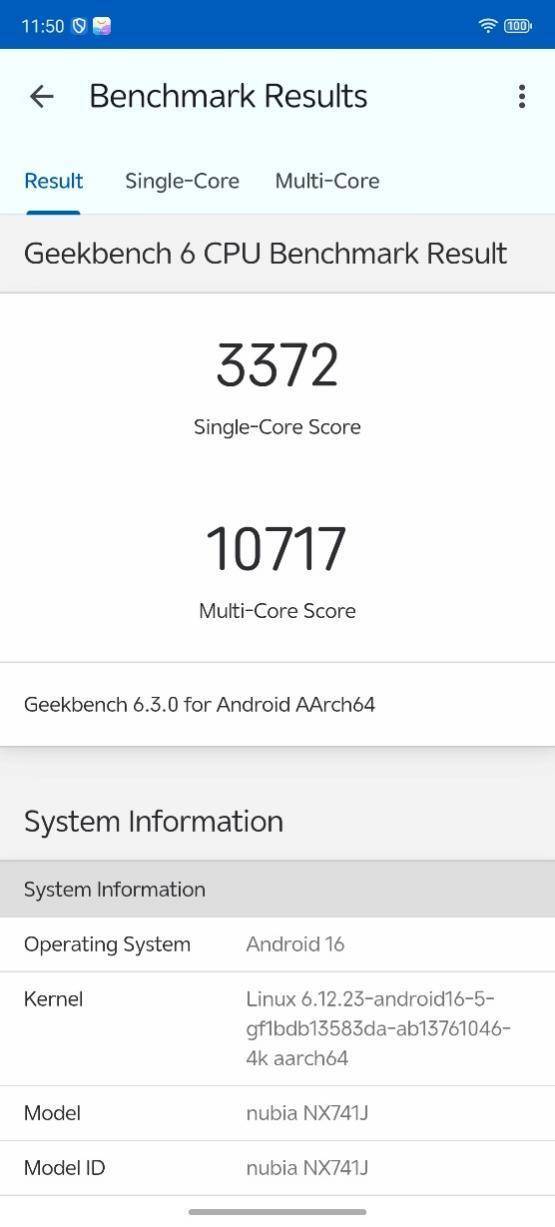 Geekbench 6的测试数据进一步印证了第五代骁龙8版处置器的机能提拔。单核得分3372,多核得分10717。多核机能的显著提拔,使得努比亚Z80 Ultra应对复杂多使命场景时愈加从容。对于商务人士和职场用户来说,他们经常需要正在挪动办公场景下同时处置多个工做使用,努比亚Z80 Ultra的多核机能劣势可以或许显著提拔工做效率。